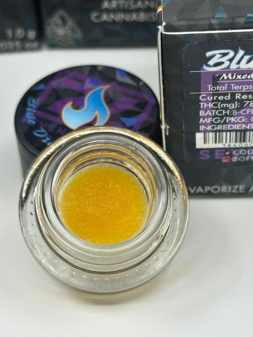 Cold Fire ensures that the presentation matches the quality inside. The ColdFire Exclusive Cured Resin Badder comes in air-tight, UV-protected glass jars that preserve freshness, terpene content, and potency. Labels provide clear details on strain name, cannabinoid percentages, terpene breakdown, and testing results.