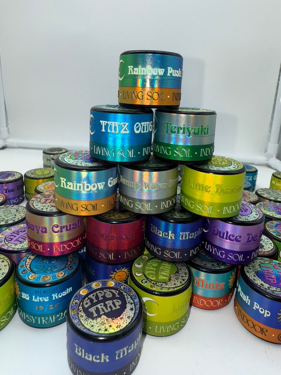 Gypsy Trap Rosin is typically housed in airtight glass jars or UV-protected containers designed to preserve its integrity. The packaging is sleek, modern, and professional — balancing artistic flair with practical protection. Each unit includes: